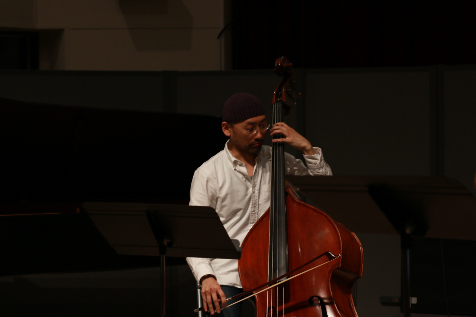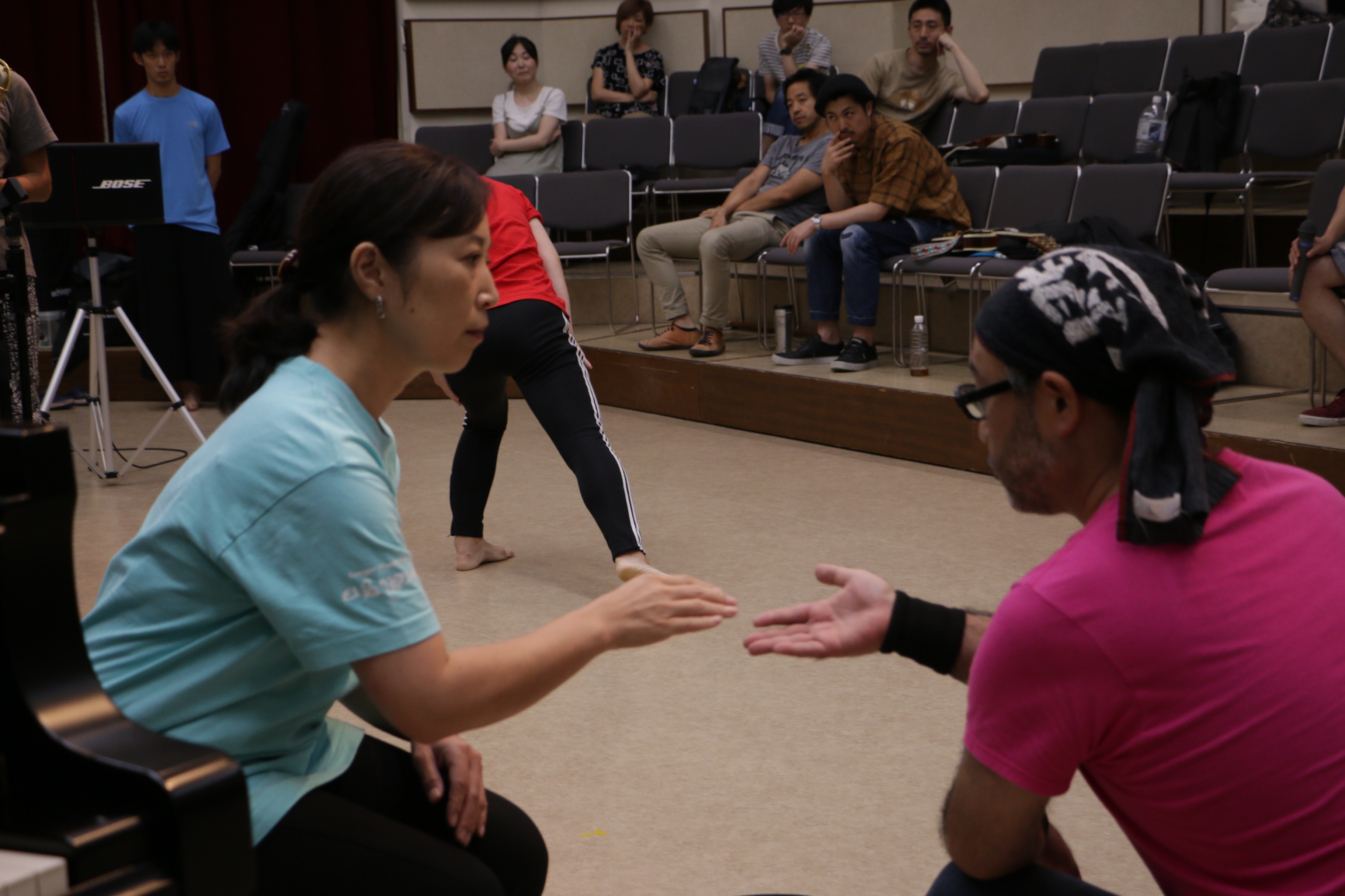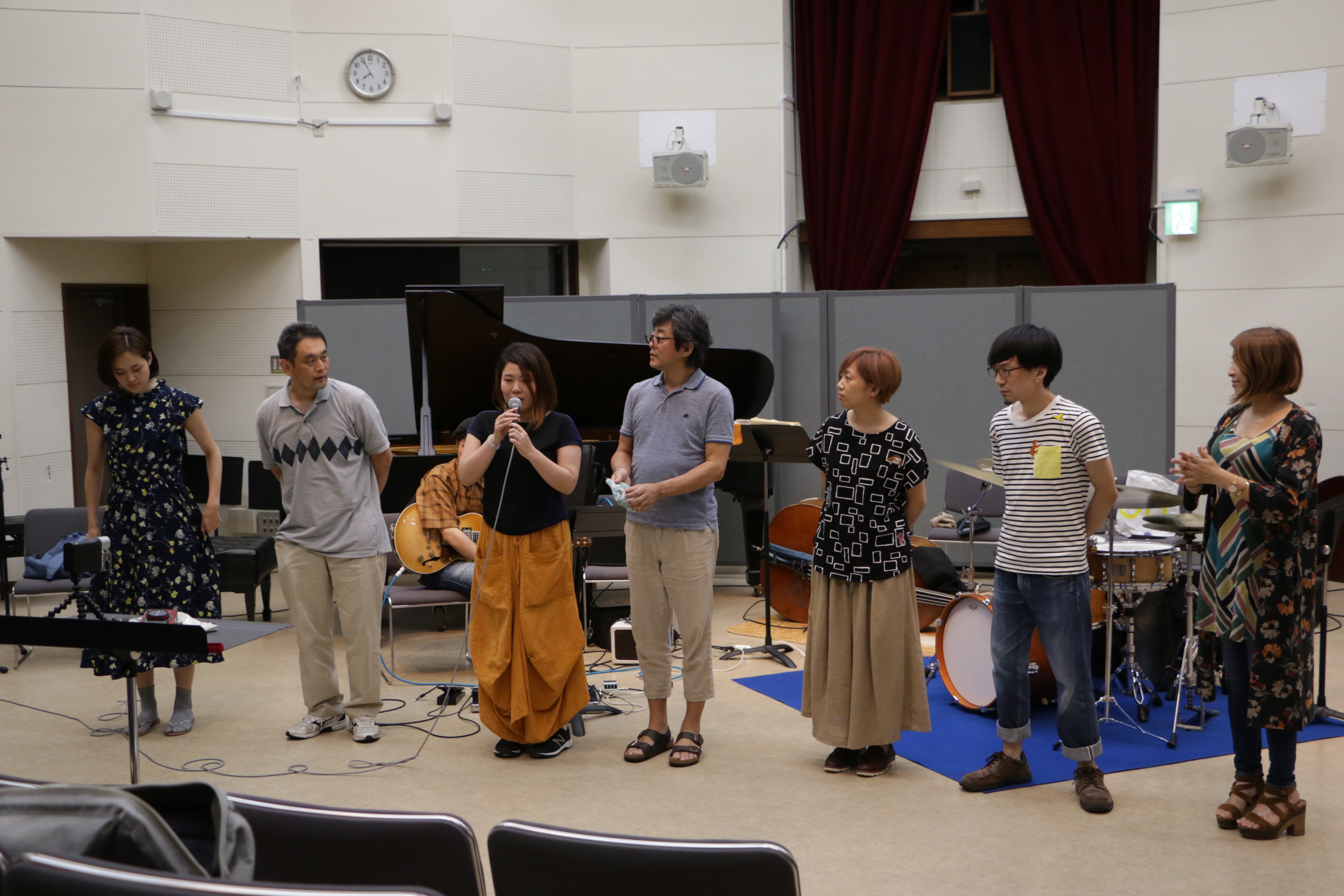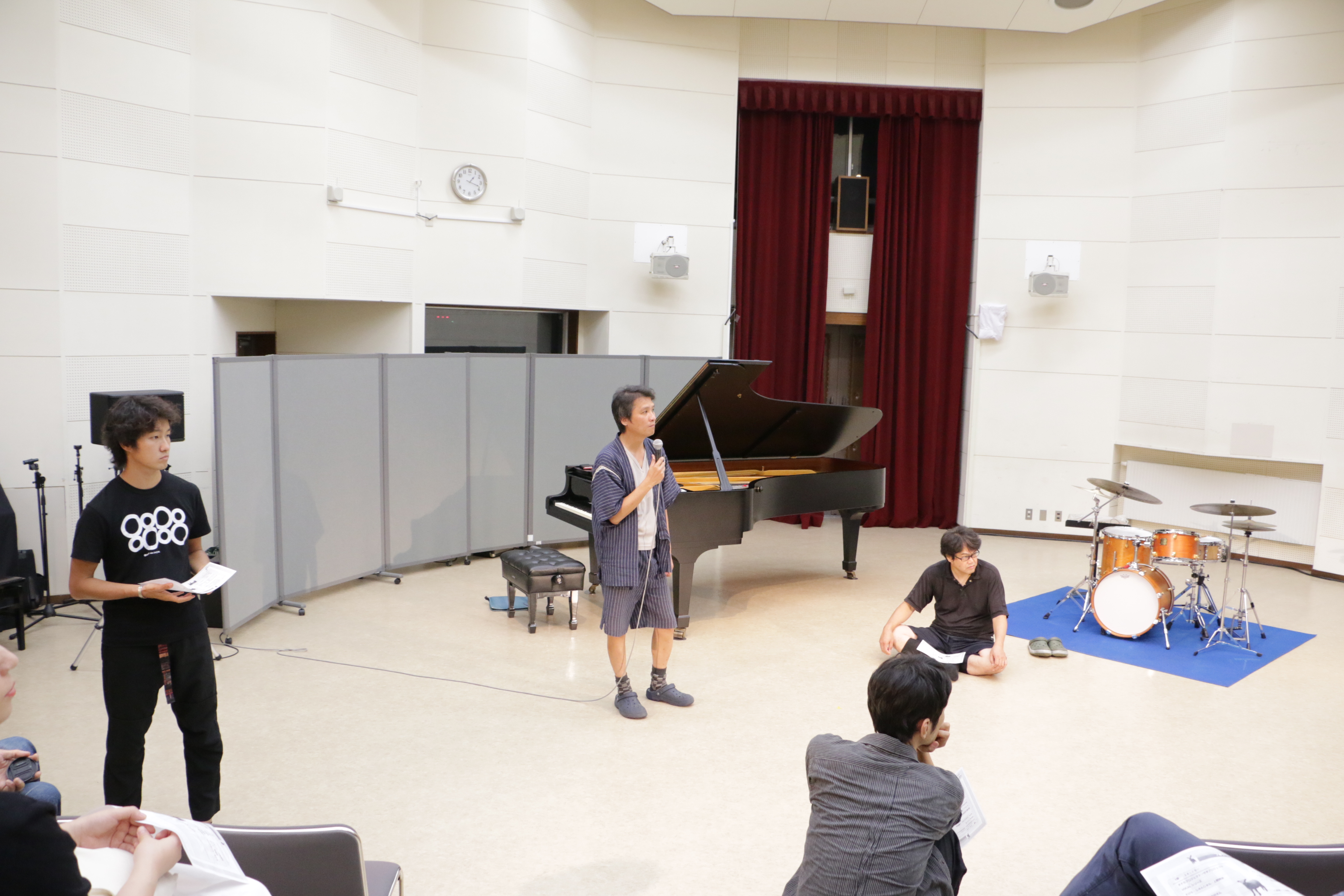 その後、同じくゲストアーティスト大村亘より、即興をするとみんなフリーテンポになる。一定のパルスがある即興があってもいいのでは?という提案があり、実際にやってみました。なるほど、これはこれでいい風味がありました。この選択肢を捨てるのはもったいない。