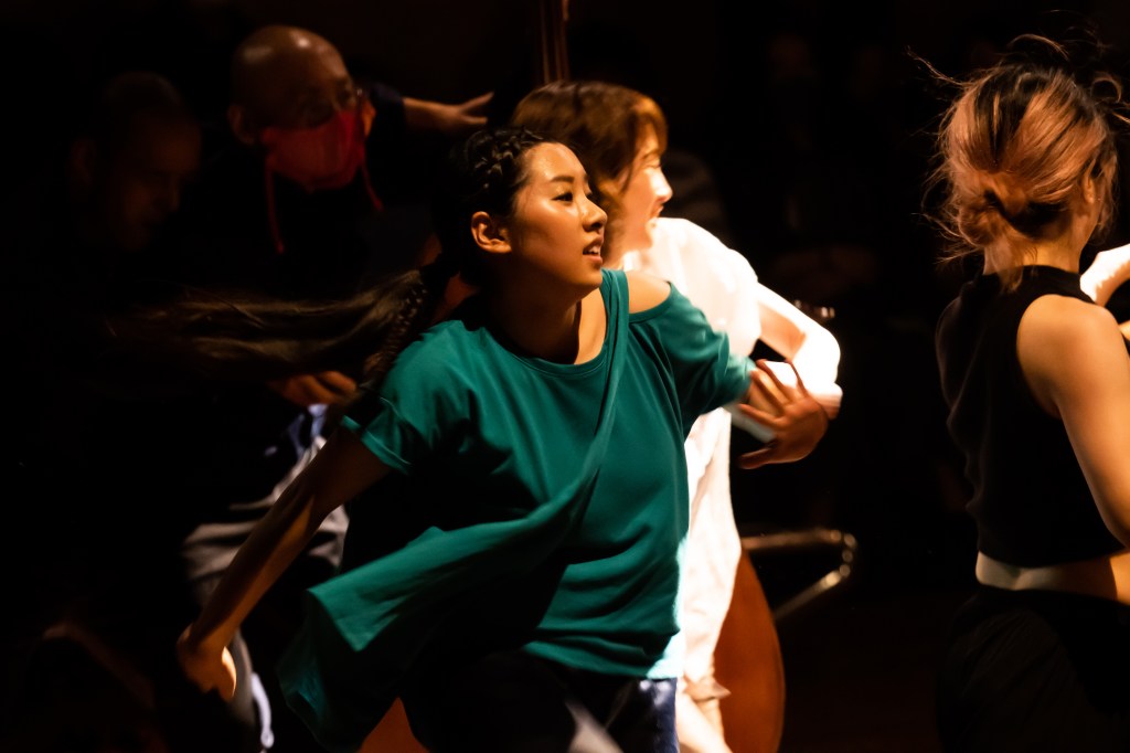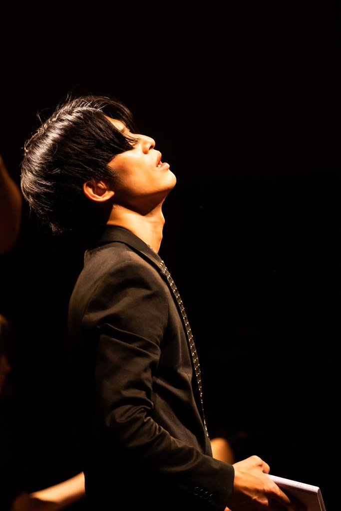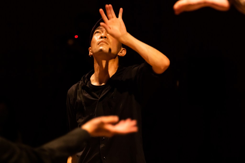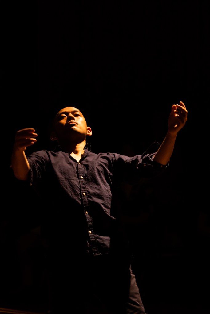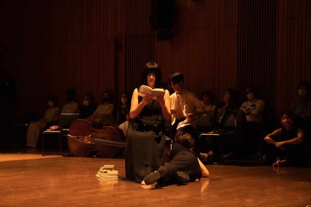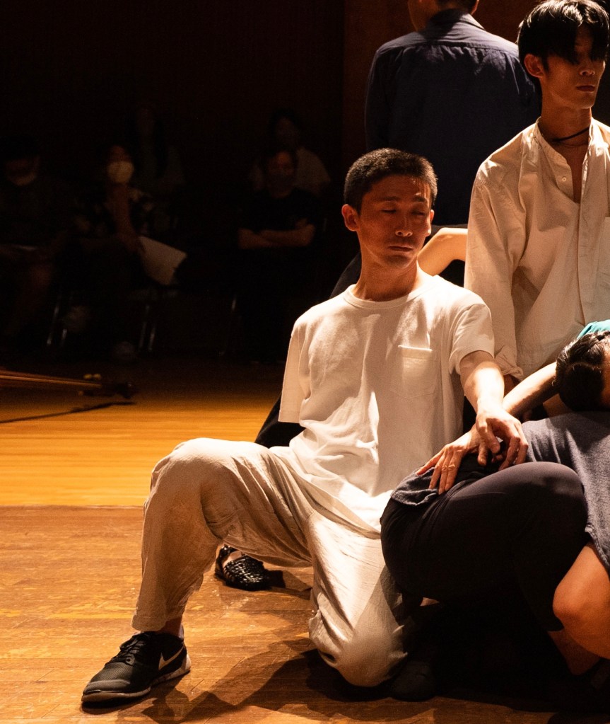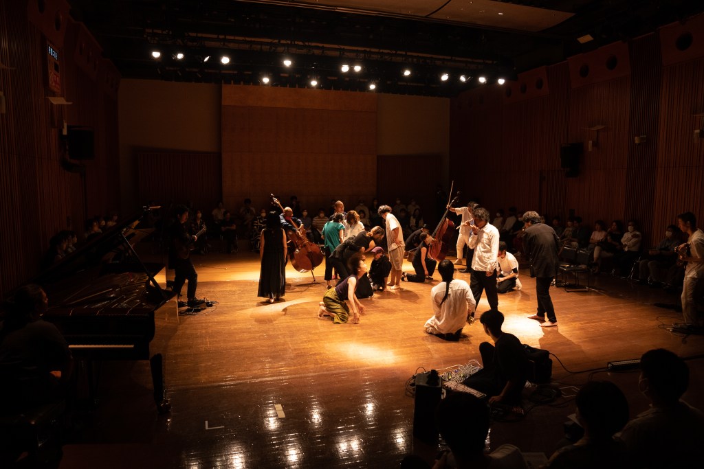 ダンサー、アクター9名 ミュージシャン13名が自らの意志と共演者との言語を介しないコミュニケーションによって、約70分のステージを作り上げました。