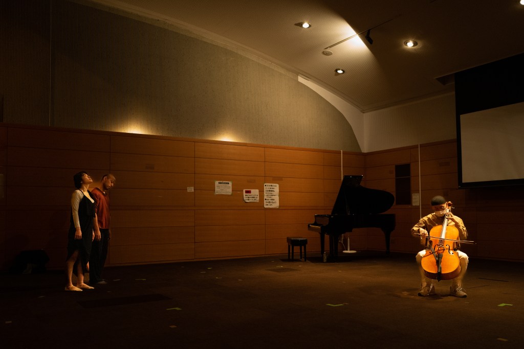 まず、音楽家二人が演奏しているのを一人のダンサーが邪魔をする。二人の間に割って入って演奏とは無関係な動きをする。そのうち、物理的に音楽家に触ってみたり、咳き込んでみたり、椅子を倒してノイズを出したり。音楽家はダンサーを無視しようとするのですが、どうしてもウザがってしまう。それもはたから見てると、それもひとつのシーンに見えてきます。